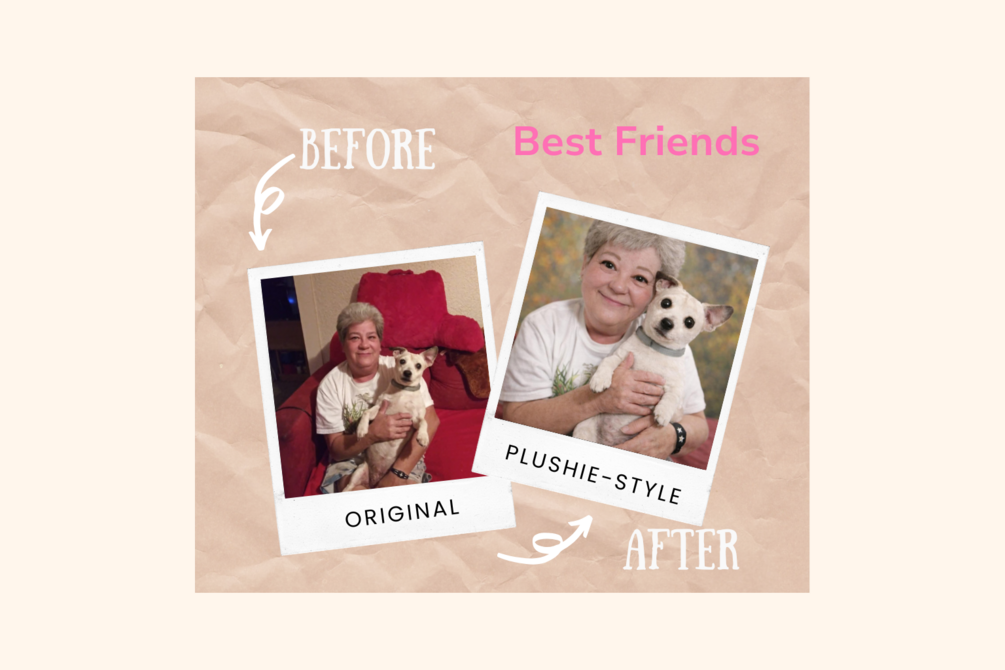 From pets to couples to grandkids, Plushie Magic transforms your favorite photo into a handcrafted digital keepsake! You upload the image. We will email you the finished product within 2-3 days.